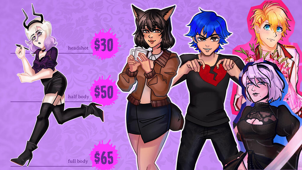 🟣 An extra fee may be charged if you want more complicated poses/character designs/backgrounds/require me to do extensive character design based on text descriptions