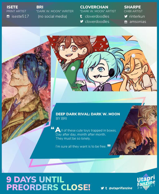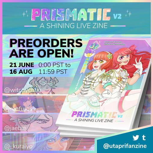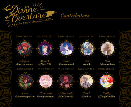 @UtapriFanzineROLE: Lead Graphic Designer & Art AdminWHAT I DID: Led the graphic design team, created social media promotional graphics, art directed look/feel and aesthetic of the 3 zines including logos, did Art Admin tasks including moderating artist applicants & check-ins for artists, designed & drew cover for Divine Overture zine.3 Zines worked on in Utapri Fanzine Project: