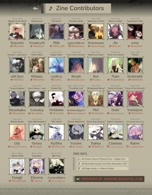 @NierZineROLE: Graphic Design ModWHAT I DID: Designed zine cover (design base only, art by other artists), created social media promotional graphics, worked on graphics for zine during the application & creation period.
